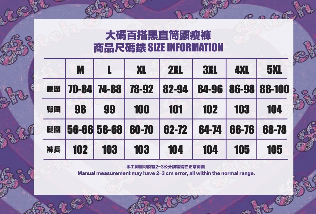 M-5XL 詳細尺碼請參考圖片尺碼表